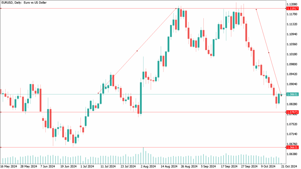 The euro came under downward pressure following the European Central Bank’s recent decision to cut interest rates by 25 basis points. This move follows a significant decline in inflation, which peaked at 10.6% in October 2022 and has since dropped to 1.7% in September, now below the ECB’s 2% target.