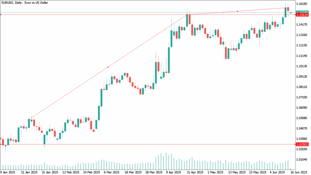 Adding to the dollar’s momentum, the University of Michigan’s Consumer Sentiment Index rose sharply to 60.5 in June, up from 52.2 and well above expectations of 53.5. The strong reading supports the case for policy stability, and the Federal Reserve is widely expected to hold rates between 4.25% and 4.50% at Wednesday’s meeting. Nonetheless, markets are still pricing in a 25 basis point rate cut by September.